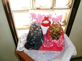 | 地域の方から毎月いただくバルーンアート。 3月は、雛人形です。 寄り添うお内裏様とお雛様の表情がかわいらしく、和みます。 松ぼっくりをつかった雛人形とともに、昇降口に飾らせていただきます。 春はもうすぐです。 |