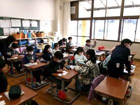 今朝は、今年度最後の「朝の読み聞かせ」でした。 毎月楽しい読み聞かせをしていただき、子ども達はとても楽しみにしていました。 今日は感謝の気持ちを込めて、子ども達がメッセージカードを贈りました。 ボランティアの皆様、一年間ありがとうございます。 |