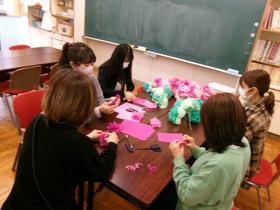 地域の方から毎月いただくバルーンアート。 3月は、雛人形です。 寄り添うお内裏様とお雛様の表情がかわいらしく、和みます。 松ぼっくりをつかった雛人形とともに、昇降口に飾らせていただきます。 春はもうすぐです。 |