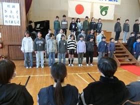 2月10日は、村松小学校の創立記念日です。 中央委員会が、創立記念集会を企画してくれました。 村松小学校の44年間を振り返りながら、村松小学校に関するクイズや、「村松小学校の好きなところインタビュー」の映像を楽しみました。 |