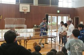 J-PARCから講師を招いて、真空砲実験教室を行いました。 対流実験教室からスタートして、真空とは何かの説明を聞いたり、実験を見たりしました。 真空砲で空き缶が潰れた実験では大歓声があがりました。 |