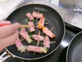 今日は6年生が調理実習でベーコン巻きを作りました。 にんじん、いんげんなどの野菜などを切り、ちょうどいい固さにゆで、ベーコンで巻いていきます。 試行錯誤しながら、崩れないよう調理しました。 どの班もとてもおいしく出来上がりました。 |
