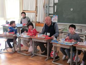 真崎地区社会福祉協議会主催の長寿ふれあい敬老会に2年生が参加し、地域の皆様と交流しました。 歌と踊りの発表、手紙のプレゼント、折り紙、肩たたきなど、一緒に楽しく活動することができました。 |