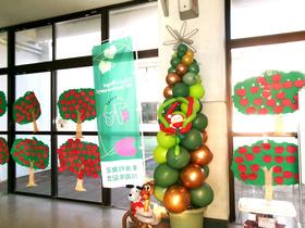 12月のバルーンアートをいただきました。 大きなクリスマスツリーです。 サンタクロースやトナカイもいます。 登校した児童たちがツリーの前に集まって、うれしそうに見ていました。 |