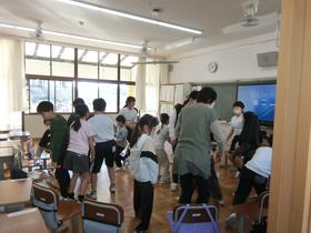 地震・火災が発生した際の避難訓練を実施しました。 今回は、授業時間外に災害が起こった場合を想定し、中休みに実施しました。 子どもたちは、それぞれ休み時間に活動していた場所で、安全を確保する行動を自分で考え、近くにいる先生と一緒に避難することができました。 4月に実施した訓練よりも、さらに実践的な避難訓練になりました。 |