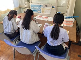 昼休みの時間帯を活用して、個別の歯科保健指導を継続しています。 歯肉炎について学び、自身の状態を把握した上で、正しいブラッシング方法を練習しています。 |